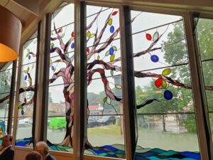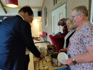 Scriba Peter de Viet van de Rehobothkerk vertelde de vergadering over het ontstaan van de hervormde gemeente Rehoboth in Sint-Maartensdijk. Oorspronkelijk was deze kerkgemeenschap een wijkgemeente voor heel Tholen. In 1965 werd de Rehobothkerk in gebruik genomen. Onder het orgel hangt een notenbalk aan de muur die de gemeente Tholen schonk bij deze gelegenheid. In de loop der jaren zijn verschillende extra ruimtes aan de kerk toegevoegd. Daaronder is ook de ontmoetingsruimte naast de kerkzaal, die in de glazen wand een afbeelding heeft van de Boom des Levens. ,,Zo treden we ook naar buiten, we willen het dorp betrekken bij wat we doen.’’ De Rehobothkerk heeft ruim 100 vrijwilligers die in allerlei sectoren actief zijn. ,,Daardoor kun je ook een mooi startweekend organiseren. We hebben ook vijf jeugdkringen.’’ Sinds coronatijd is er op zondag nog één eredienst en op de eerste zondag van de maand twee diensten. De gemeente is momenteel vacant. ,,We doen veel activiteiten in en met het dorp. Het is een bijzondere en hechte gemeenschap. Alleen bij lokale evenementen is het ‘smerdieks’, voor de rest zijn we vooral eilandelijk actief.’’ Scriba De Viet werd indertijd in het ambt bevestigd door classispredikant Arie van der Maas. Het was goed toeven in deze gastvrije gemeente!